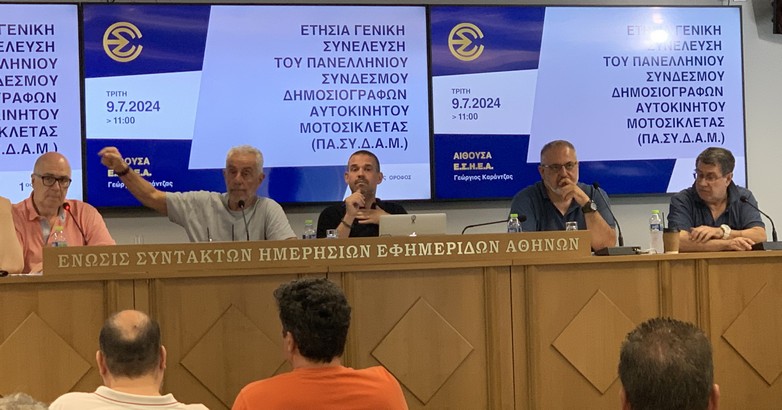 Η Γενική Συνέλευση των μελών του ΠΑ.ΣΥ.Δ.Α.Μ. (ΠΑΝΕΛΛΗΝΙΟΣ ΣΥΝΔΕΣΜΟΣ ΔΗΜΟΣΙΟΓΡΑΦΩΝ ΑΥΤΟΚΙΝΗΤΟΥ ΜΟΤΟΣΥΚΛΕΤΑΣ) πραγματοποιήθηκε την Τρίτη 9 Ιουλίου 2024, στην αίθουσα εκδηλώσεων της ΕΣΗΕΑ. Κατά τις αρχαιρεσίες που ακολούθησαν, αναδείχθηκαν τα μέλη του Διοικητικού Συμβουλίου, του Πειθαρχικού Συμβουλίου και της Εξελεγκτικής Επιτροπής του Συνδέσμου. Μετά τη λήξη της ψηφοφορίας και την καταμέτρηση, η Εφορευτική Επιτροπή, ανακοίνωσε τα αποτελέσματα. Για το Δ.Σ. (ψήφοι): Μανώλης Σαλούρος (41), Νίκος Τσάδαρης (38), Πέτρος Πιτσίνης (33), Κώστας Μποϊδάνης (29), Γιάννης Κανουπάκης (26), Νίκος Γιαννούλας (25), Νίκος Λουπάκης (25), Γιώργος Ανδρής (16), Νίκος Βιτσιλάκης (15), Θανάσης Χούντρας (15), Γιώργος Αγαπητός (10), Χριστίνα Μυρτώ Σταθάκη (10)