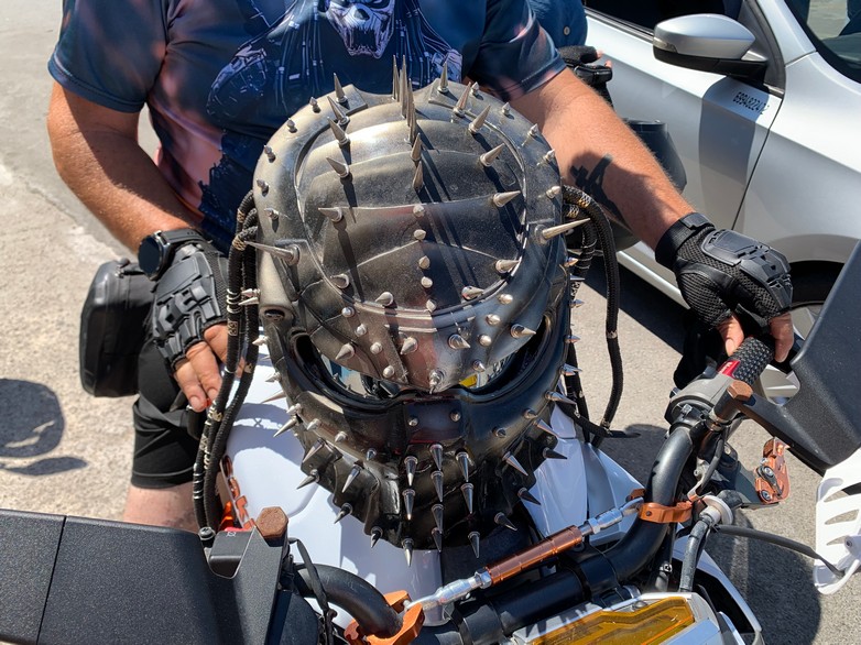 Αυτό που βλέπετε είναι κράνος. Θυμίζει κάτι από την εποχή των Βίκινγκ. Ωστόσο ο αναβάτης και ιδιοκτήτης του κράνους δεν έχει καμιά σχέση με τη Σκανδιναβία. Είναι Έλληνας που του αρέσει να αλλάζει το παρουσιαστικό του κράνους που φοράει και σίγουρα…ξεχωρίζει.