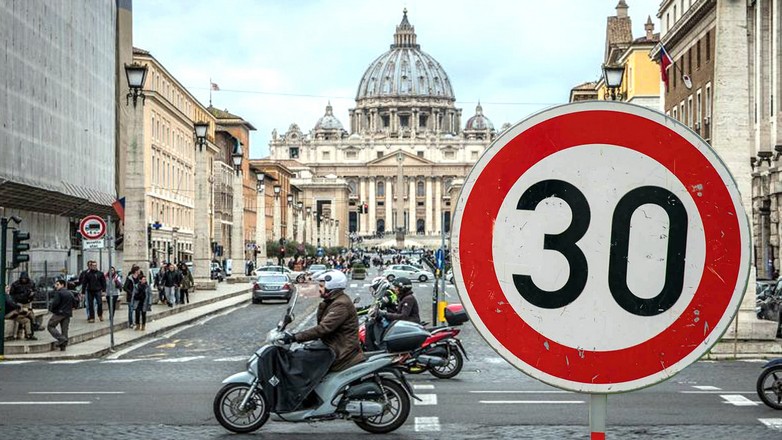 Η Ρώμη ήταν η τελευταία σε σειρά ευρωπαϊκή πρωτεύουσα που μείωσε δραστικά τα όρια ταχύτητας στους δρόμους της, σε μια προσπάθεια να ελαττώσει τόσο τον αριθμό των τροχαίων ατυχημάτων, όσο και τη ρύπανση. Τώρα σε όλες τις ευρωπαϊκές χώρες το όριο ταχύτητας στις πόλεις είναι τα 30 χιλιόμετρα. Μπορεί να δείτε και πινακίδες με 20 χιλιόμετρα. Αυτές είναι είτε κοντά σε Σχολεία είτε κοντά σε Νοσοκομεία. Η πρώτη μεγάλη πόλη της Ιταλίας η οποία επέβαλε όριο ταχύτητας στα 30 χλμ./ώρα, τον Ιανουάριο του 2024 ήταν η Μπολόνια ( βόρεια Ιταλία). Σύμφωνα με τα επίσημα στοιχεία που έδωσε ο Δήμαρχος στην Μπολόνια από τη μείωση της ταχύτητας στους δρόμους της πόλης, τα τροχαία ατυχήματα μειώθηκαν κατά 13% ενώ οι θάνατοι μειώθηκαν κατά περίπου 50% τη χρονιά που έγινε.
