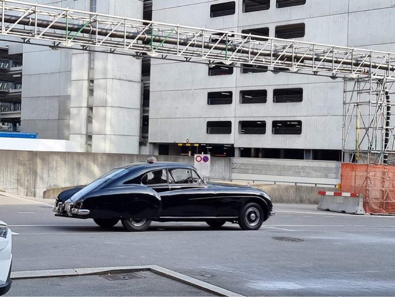 Αυτό το αυτοκίνητο αντίκα το οδηγεί ένας καλοβαλμένος 70άρης. Το πετύχαμε φτάνοντας στο αεροδρόμιο της Ζυρίχης. Είναι καλογυαλισμένο. Του κουτιού. Ο ιδιοκτήτης του έχει ξοδέψει αρκετές δεκάδες χιλιάδες ευρώ για να το περάσει αμμοβολή και να το κάνει καινούργιο. Είναι μια Benltey R Type Comtinental του 1953. Έτσι για να ξέρετε από το 1952 που ξεκίνησε η παραγωγή του συγκεκριμένου μοντέλου κατασκευάστηκαν 208 μοντέλα. Κάτω από το καπό της ολόμαυρης Bentley  «κρύβεται»  ένας 6κύλινδρος κινητήρας 4.566 κ.εκ.