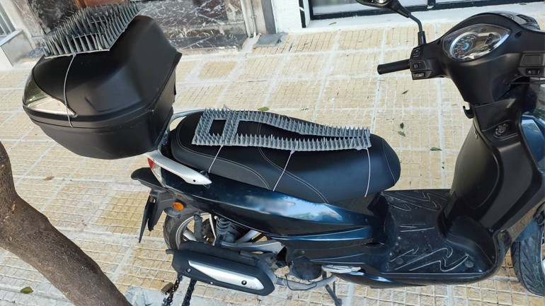 Μα τι ζώα είναι κάποιοι που θέλουν να πιστεύουν ότι είναι άνθρωποι. Το scooter που βλέπετε το «πετύχαμε» στα Κάτω Πατήσια. Σίγουρα ο ιδιοκτήτης του δεν είναι φιλόζωος. Για να αποφύγει τις πατημασιές στη σέλα του από τις γάτες σκέφθηκε να τις τιμωρήσει. Όποια γάτα πηδήξει από κάποιο δένδρο στη σέλα του θα καρφωθεί. Όταν σταθμεύει το scooter , βγάζει αυτό το πλέγμα με καρφιά και το απλώνει πάνω στη σέλα και στη μπαγκαζιέρα. Συγχαρητήρια στο «φιλόζωο» δικυκλιστή. Αν κάποιος όμως πραγματικά φιλόζωος του βάλει φωτιά θα έχει άδικο;