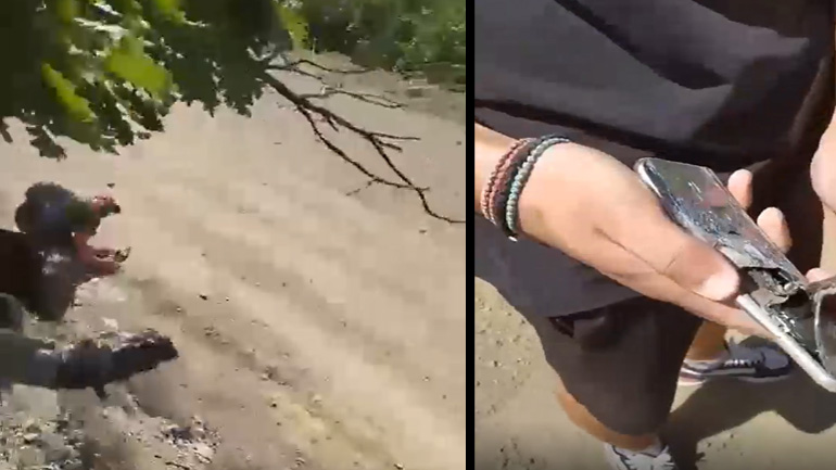 Ένας άλλος θεατής ήθελε να τραβήξει καλές λήψεις. Τοποθέτησε το κινητό του τηλέφωνο στην άκρη του δρόμο αλλά όταν πέρασε το πρώτο αγωνιστικό το πάτησε και το έκανε κομμάτια.