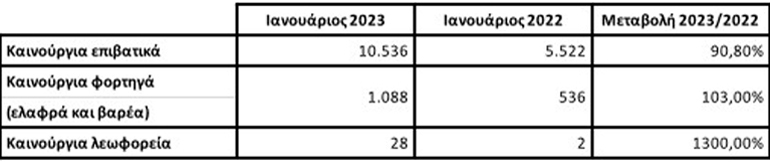 Οι ταξινομήσεις στα καινούργια ΙΧ έφτασαν τις 10.536 σε σχέση με τον αντίστοιχο μήνα του 2022 που ήταν 5.522.