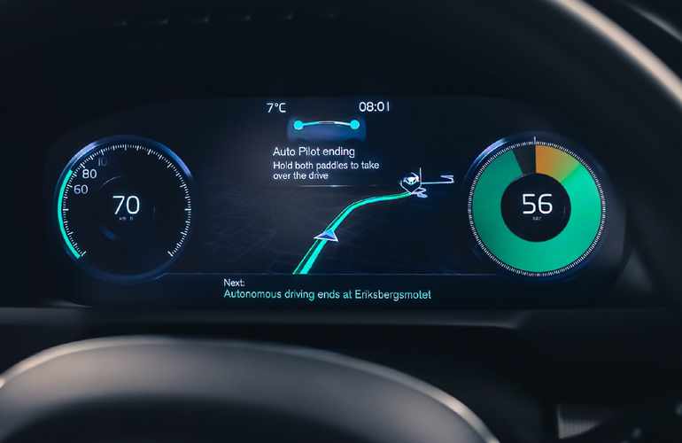 Όταν η αυτόνομη οδήγηση δεν είναι πλέον διαθέσιμη, ο οδηγός ειδοποιείται να αναλάβει πάλι τον έλεγχο και να συνεχίσει το ταξίδι. Μια ένδειξη αντίστροφης μέτρησης εξήντα δευτερολέπτων εμφανίζεται στην οθόνη. Αν ο οδηγός δεν χρησιμοποιήσει τα paddles για να ανακτήσει τον έλεγχο στη διάρκεια αυτού του ενός λεπτού, το αυτοκίνητο θα ακινητοποιηθεί στο πλάι του δρόμου μόνο του και με ασφάλεια.
