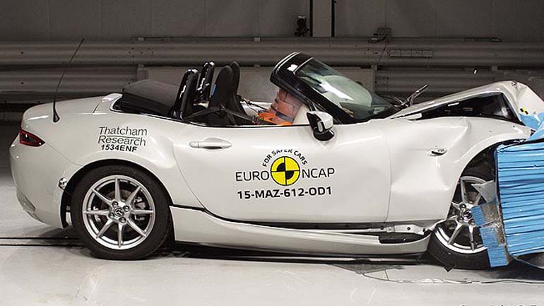 Από την άλλη, το MX-5 έχασε το πέμπτο αστέρι λόγω της απουσίας του συστήματος αυτόνομης πέδησης έκτακτης ανάγκης. Πρόκειται για σημαντικό χαρακτηριστικό ασφαλείας, το οποίο περιλαμβάνεται στο βασικό εξοπλισμό ολοένα και περισσότερων αυτοκινήτων. Η επιμέρους βαθμολογία του ήταν 31,9 πόντους (84%) στην προστασία ενήλικων επιβατών, 17 πόντους (80%) στην προστασία παιδιών, 33,7 πόντους (93%) στην προστασία πεζών και 8,3 πόντους (64%) στα συστήματα ασφάλειας.