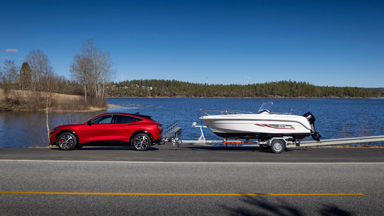 Τώρα η εγκεκριμένη ικανότητα ρυμούλκησης με φρένα της Ford Mustang Mach-E αυξάνεται στα 1.000 kg για τα μοντέλα Extended Range τόσο στην έκδοση με κίνηση στους πίσω τροχούς όσο και στην τετρακίνητη έκδοση. Αυτή η επίδοση είναι αρκετή για να μπορούν οι ιδιοκτήτες των Mach-E, να ρυμουλκήσουν ένα τυπικό μικρό ή μεσαίο πολυεστερικό σκάφος.