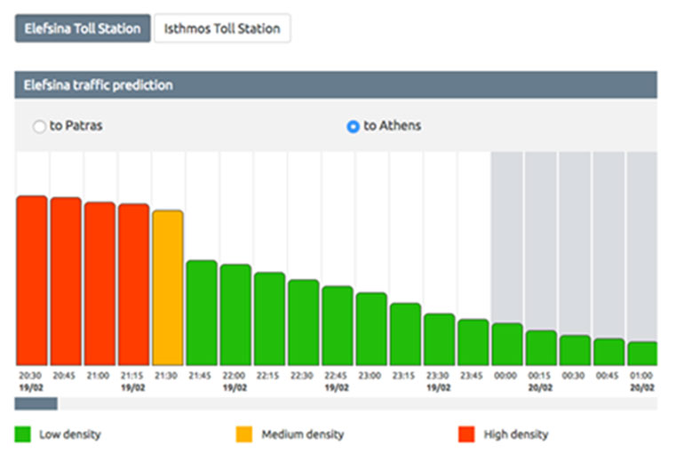 2. Να βλέπουν την πρόβλεψη της κυκλοφορίας στους παραπάνω σταθμούς (Ελευσίνα, Ισθμός) και για τις δύο κατευθύνσεις για τις επόμενες τρεις μέρες (72 ώρες).