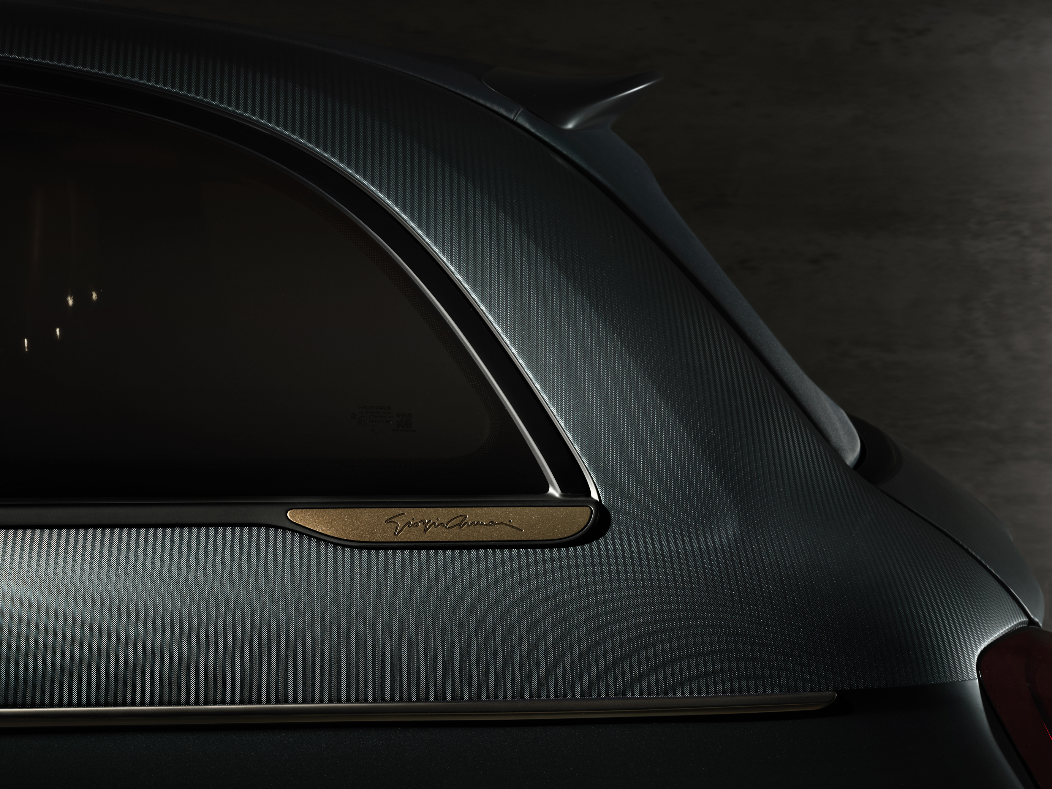 Οι μηχανικοί κατάφεραν με τη χρήση λέιζερ στο πάνω μέρος του αμαξώματος να «χαράξουν» το χρώμα δίνοντας του την υφή και την όψη ενός ακριβού υφάσματος, αντάξιου του ονόματος Armani. Η όψη «ψαροκόκαλου» εκτός από το αισθητικό αποτέλεσμα συμβάλει και στην αύξηση της συνολικής επιφάνειας που έρχεται σε επαφή το διοξείδιο του τιτανίου της βαφής με τον ατμοσφαιρικό αέρα μεγιστοποιώντας τη δυνατότητα του Fiat 500 by Armani να καθαρίζει τον αέρα κατά την κίνηση του.