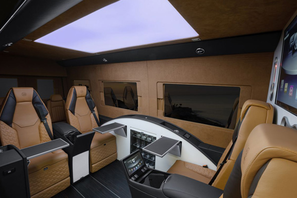 Εξωτερικά μοιάζει σαν ένα απλό Mercedes Sprinter. Αν ανοίξεις τις συρόμενες πόρτες όμως, μπαίνεις σε ένα «μαγικό» κόσμο που ικανοποιεί τις ανάγκες και του πιο απαιτητικού.