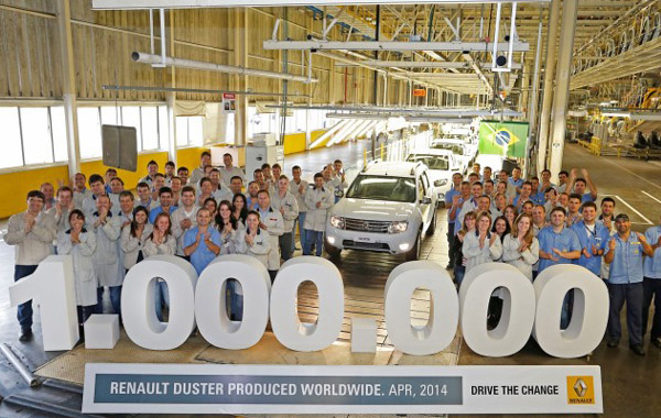 Το εκατομμυριοστό Duster κατασκευάστηκε στο εργοστάσιο της Renault στη Βραζιλία και προορίζεται για εγχώριο πελάτη. Το μοντέλο παράγεται σε πέντε εργοστάσια σε όλο τον κόσμο, με τη Ρωσία να αποτελεί τη μεγαλύτερη αγορά με 151.633 μονάδες. Ακολουθούν, η Γαλλία με 145.612 πωλήσεις, η Βραζιλία με 117.303, η Ινδία με 85.974 και η Γερμανία με 70.159.