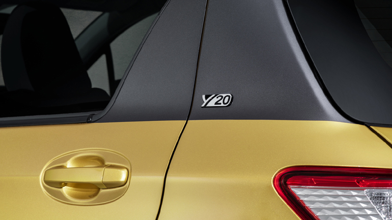 Το αυτοκίνητο θα παραχθεί σε 1.998 μονάδες, με το αμάξωμα να είναι βαμμένο στη χρυσή απόχρωση του πρώτης γενιάς Yaris. Η οροφή είναι σε γκρι σκούρο χρώμα και οι ζάντες 16 ιντσών, με το αμάξωμα να φέρει επιπλέον διακοσμητικά, φιμέ πίσω τζάμια και φυσικά το λογότυπο Y20.