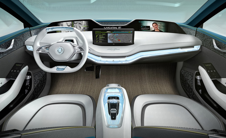 Αυτό που κάνει τη διαφορά ωστόσο είναι η καμπίνα. Οι σχεδιαστές της Skoda έχουν δημιουργήσει το απόλυτο high tech περιβάλλον, με την εικόνα και τις τεχνολογίες να σε αφήνουν άναυδο. Τρεις οθόνες υψηλής ευκρίνειας στο ταμπλό προβάλλον οποιαδήποτε πληροφορία, τα καθίσματα περιστρέφονται για την βέλτιστη άνεση των επιβατών, ενώ σε κάθε θέση υπάρχει ανεξάρτητο σύστημα πολυμέσων, smartphone και επαγωγικό σύστημα φόρτισης.