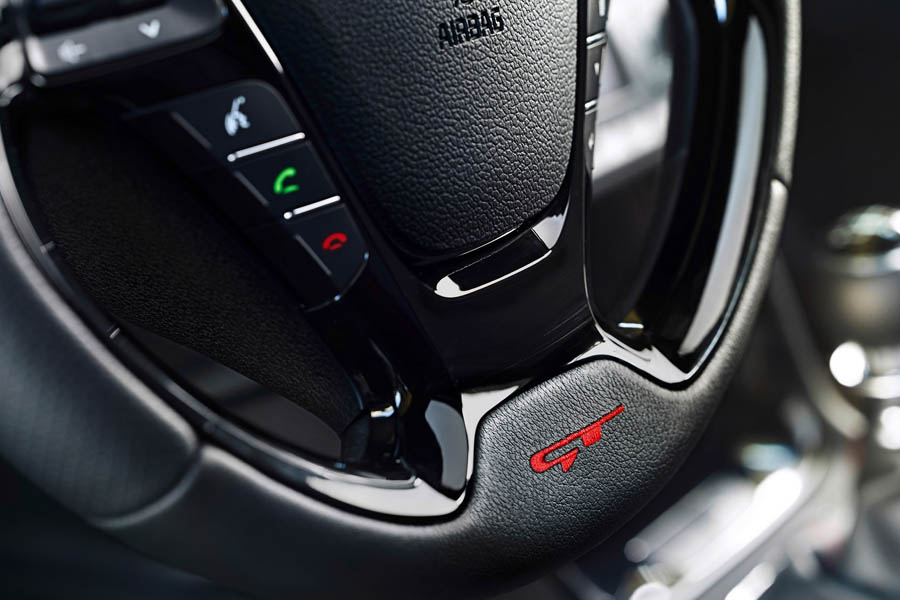Η σχεδίασή του είναι άκρως δυναμική και επιθετική, με τις μεγάλες εισαγωγές αέρα εμπρός, την κόκκινη γρίλια, τα σπόιλερ, την αεροτομή, τις ζάντες 18 ιντσών με τους αεριζόμενους δίσκους και το χαμηλωμένο αμάξωμα να αναδεικνύουν τον σπορτίφ χαρακτήρα του. Στο εσωτερικό, τα μπάκετ καθίσματα της Recaro και το τιμόνι κάνουν τη διαφορά.