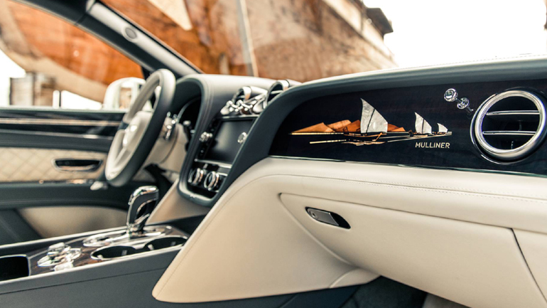 Στο εσωτερικό, οι εξειδικευμένοι τεχνίτες της Mulliner έχουν εμπνευστεί από τον τρόπο που οι δύτες βουτούσαν στα νερά του Περσικού Κόλπου για να βρουν τα μαργαριτάρια πριν από χιλιάδες χρόνια. Η εικόνα του παραδοσιακού κυνηγιού προβάλλεται στο ταμπλό μπροστά από τον συνοδηγό.