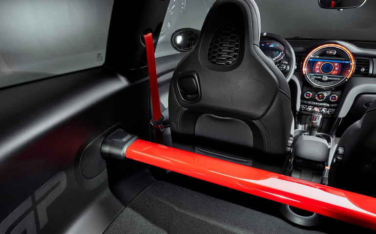 Το εσωτερικό του John Cooper Works GP συνδυάζει καθαρόαιμη σπορ αίσθηση με έντονες χρωματικές πινελιές. Ο νέος, ανεξάρτητος ψηφιακός πίνακας οργάνων προβάλλει χρήσιμες πληροφορίες στο οπτικό πεδίο του οδηγού ανάλογα με τις εκάστοτε απαιτήσεις.