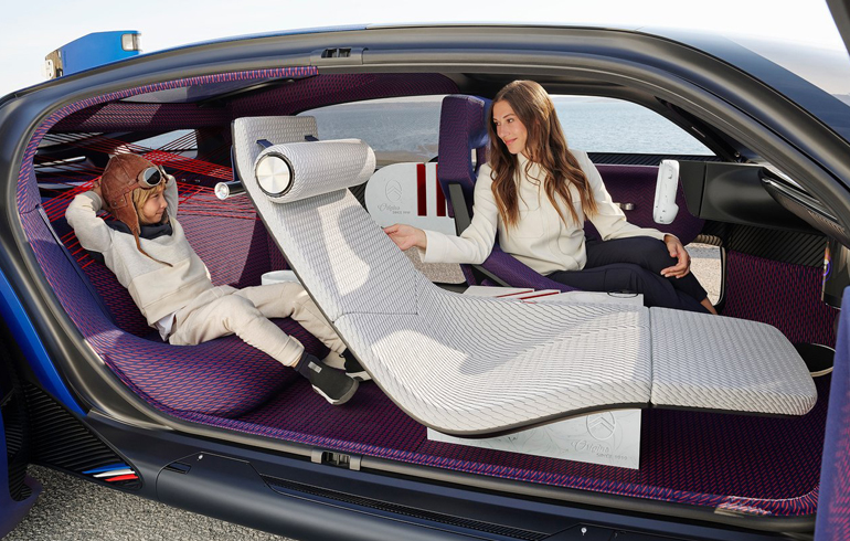 Η καμπίνα είναι άκρως εντυπωσιακή, συνδυάζοντας το μινιμαλιστικό στυλ ενός σαλονιού με το cockpit ενός αεριωθούμενου. Πίσω υπάρχει ένα κάθισμα τύπου πολυθρόνα και εμπρός δύο ιδιαίτερες κατασκευές. Όλες οι πληροφορίες προβάλλονται από οθόνες επαυξημένης πραγματικότητας, το τιμόνι είναι ανακλινόμενο και οι χώροι εξαιρετικά άνετοι. Φυσικά, δεν λείπουν οι προηγμένες εφαρμογές συνδεσιμότητας με λειτουργία φωνητικών εντολών και υπηρεσία ψηφιακού βοηθού.