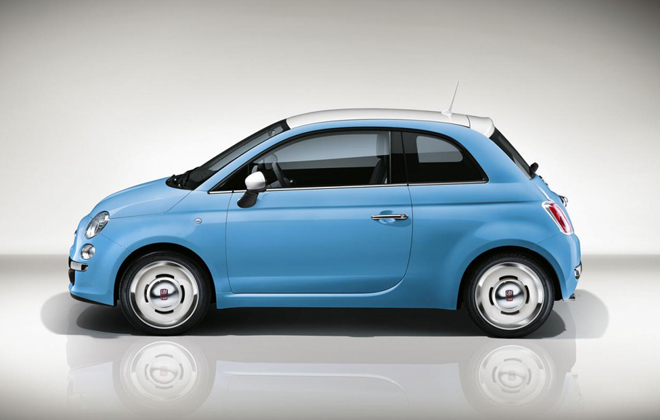 Το νέο 500 Vintage ’57, είναι βαμμένο σε ένα παστέλ μπλε χρώμα, έχοντας λευκή οροφή και ρετρό ζάντες αλουμινίου, όμοιες με αυτές που φορούσε και το αρχικό 500 του 1957.