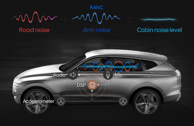 Το GV80 της premium μάρκας του ομίλου Hyundai εξοπλίζεται με τα πιο προηγμένα συστήματα. Ανάμεσα σε αυτά είναι και το επαναστατικό «Road-Noise Active Noise Control (RANC)». Η τεχνολογία αναπτύχθηκε σε συνεργασία με τη Harman Kardon και αντισταθμίζει τους εξωτερικούς θορύβους μέσω ηχητικών κυμάτων που εκπέμπονται σε πραγματικό χρόνο.