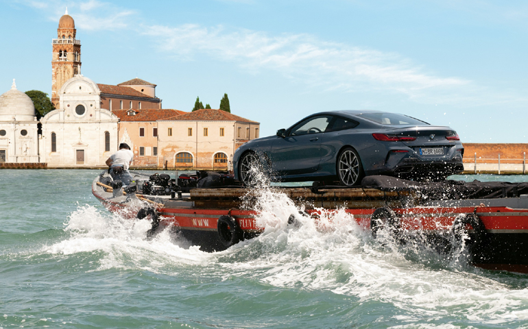 Όπως είναι γνωστό, στο περίφημο κέντρο της Βενετίας τα μοναδικά μέσα μεταφοράς που επιτρέπονται είναι οι γόνδολες, τα βαπορέτα και τα μικρά ταχύπλοα. Η βαυαρική φίρμα, ωστόσο, διέσχισε το περίφημο centro storico με την καινούργια 8 Series Coupe. Το πολυτελές τετράτροχο μοντέλο της BMW πέρασε δίπλα από τα μεγαλοπρεπή παλάτια και κάτω από τις γέφυρες, πριν φθάσει στο Μεγάλο Κανάλι, ολοκληρώνοντας μία πρωτοφανή διαδρομή.