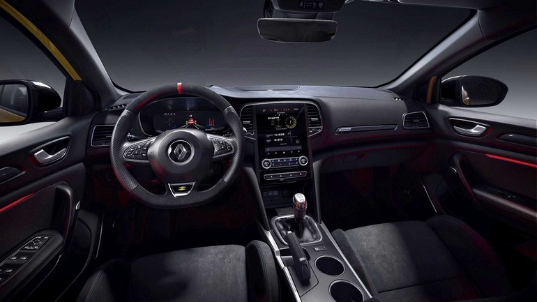 Μπαίνοντας στο εσωτερικό, το Ultime έχει bucket καθίσματα Recaro τυλιγμένα με επένδυση Alcantara με λογότυπα RS. Για να δηλώσει την ειδική του κατάσταση, η Renault sport έχει προσθέσει μια αριθμημένη μεταλλική πλάκα στο κάτω μέρος της κεντρικής κονσόλας, η οποία φέρει την υπογραφή του οδηγού ανάπτυξης Laurent Hurgon, ο οποίος κατέχει τα ρεκόρ Nürburgring, Suzuka και Spa-Francorchamps για αυτοκίνητα με κίνηση στους μπροστινούς τροχούς.