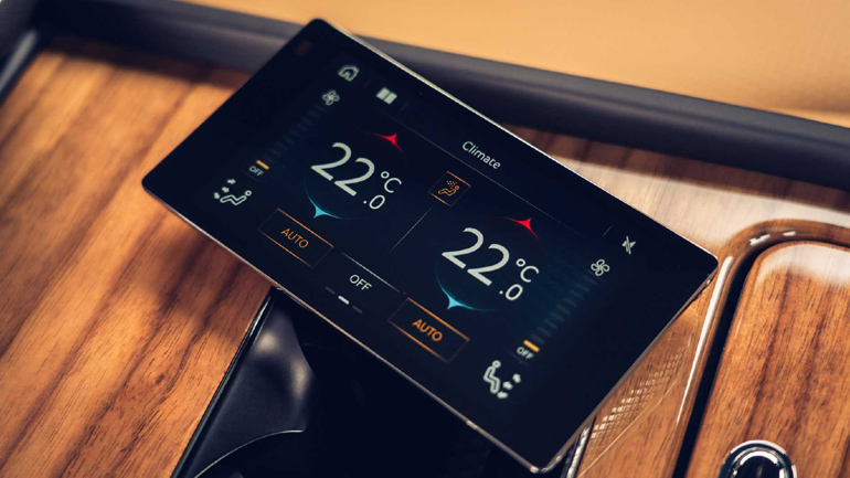 Τα πάντα ελέγχονται από ένα tablet 5 ιντσών που έχει τοποθετηθεί στην κονσόλα ανάμεσα στα δύο πίσω καθίσματα. Μέσω αυτού, μπορείς να ρυθμίσεις τον κλιματισμό, το μασάζ, τον εσωτερικό φωτισμό και τα κουρτινάκια.