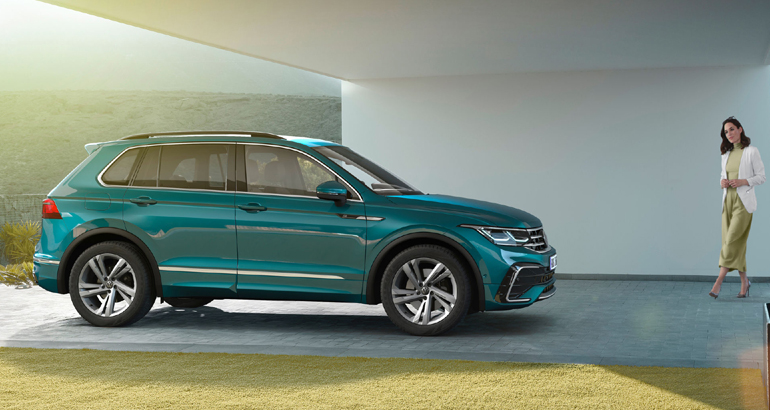 Ξεκινώντας από τα βασικά, το Tiguan φέρει νέα μάσκα με προβολείς LED, ψηλότερο καπό, καινούριους προφυλακτήρες, πλουσιότερη γκάμα χρωμάτων για το εξωτερικό αμάξωμα και νέου σχεδιασμού ζάντες διαστάσεων από 17 έως 21 ίντσες. Στο πίσω τμήμα το όνομα του μοντέλου έχει τοποθετηθεί σε εμφανή κεντρική θέση κάτω από το σήμα Volkswagen.