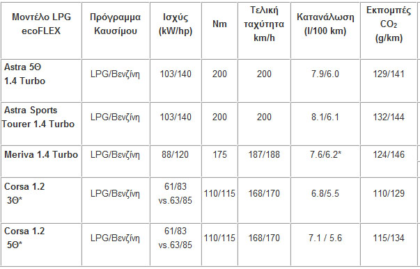 Η Opel είναι μία από αυτές και επεκτείνει τη γκάμα των LPG (Liquefied Petroleum Gas) μοντέλων της. Τα πεντάθυρα Astra, Astra Sports Tourer και Meriva διατίθενται τώρα κατόπιν παραγγελίας με το νέο, ισχυρό αλλά οικονομικό κινητήρα 1.4 LPG Turbo ecoFLEX. Ο αποδοτικός κινητήρας μπορεί να λειτουργήσει σε πρόγραμμα LPG και βενζίνης και διατίθεται σε δύο εκδόσεις ισχύος: 140 ίππων με ροπή 200 Nm στα Astra 5Θ και Sports Tourer και με 120 ίππους (175 Nm) στο Meriva. Οι εκπομπές CO2 του κινητήρα Euro 5 στην έκδοση LPG είναι 124 γραμμάρια στο χιλιόμετρο για το Meriva, 129 για το Astra 5Θ και 132 για το Astra Sports Tourer.