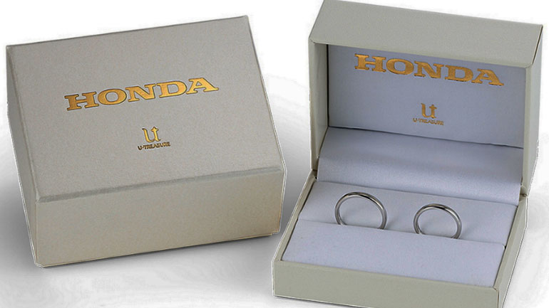 Μία εταιρία κοσμημάτων στην Ιαπωνία, θέλησε να πάει ένα βήμα παραπέρα την αγάπη μερικών για το αυτοκίνητο και να την «ενώσει» με την αγάπη μεταξύ ζευγαριών. Πιο συγκεκριμένα, η Japans U-Treasure κατασκευάζει βέρες γάμου οι οποίες είναι κατασκευασμένες από πλατίνα και εξωτερικά μοιάζουν με τυπικά ασημένια γαμήλια δαχτυλίδια.