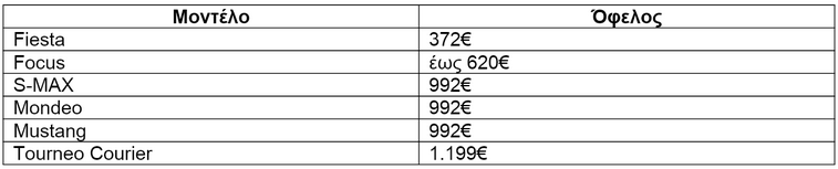 Στον παρακάτω πίνακα μπορείτε να δείτε το όφελος που προκύπτει από το νέο πρόγραμμα «FordΕύκολα» για τα υπόλοιπα επιβατικά μοντέλα Ford: