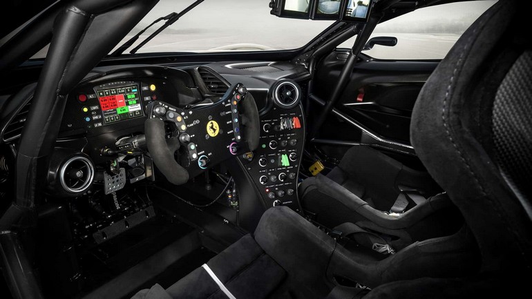 Παρόλο που το αυτοκίνητο θα παραμείνει ένα μοναδικό, η Ferrari αναφέρει ότι η σχεδίαση του KC23 παρέχει μια κρυφή ματιά στα μελλοντικά μοντέλα. Πάντως ενώ το εξωτερικό έχει επανασχεδιαστεί πλήρως, το εσωτερικό διατηρεί την απογυμνωμένη διαμόρφωση με δύο καθίσματα τύπου μπάκετ και μια ποικιλία διακοπτών που έχουν μεταφερθεί από το 488 GT3 Evo. Σκεφτείτε πως μόνο το τιμόνι, διαθέτει 16 κουμπιά.