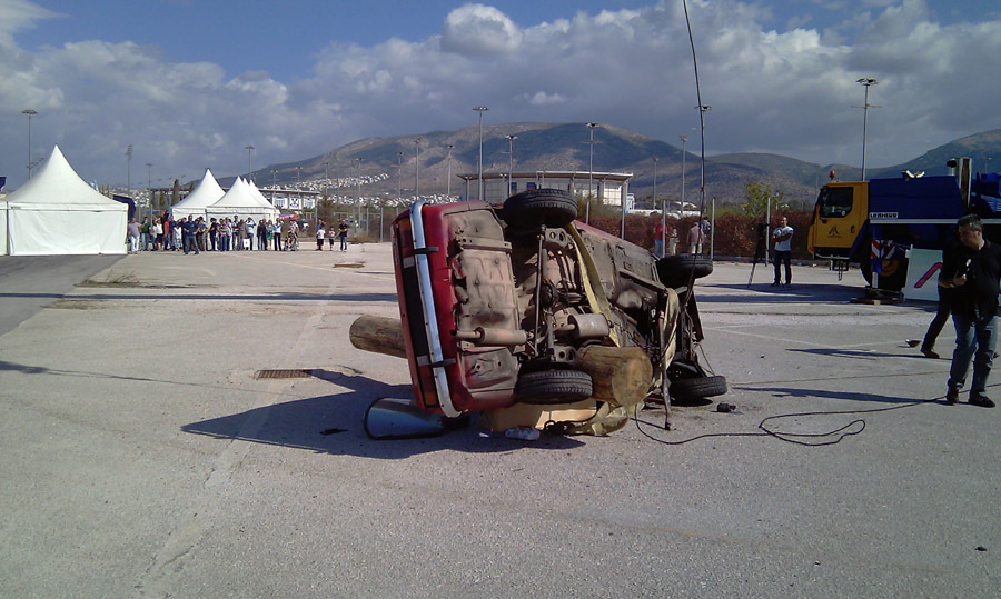 Η φετινή έκθεση αυτοκινήτου δεν έχει μόνο νέα μοντέλα αλλά και εκδηλώσεις που οι περισσότεροι δεν έχουν δει ποτέ. Σήμερα το μεσημέρι στον περιβάλλοντα χώρο του πρώην δυτικού αεροδρομίου (έξω από την αίθουσα ξιφασκίας) πραγματοποιήθηκε για πρώτη φορά στην Αθήνα ζωντανό crash test με την επιμέλεια των φοιτητών του τμήματος μηχανολόγων του ΕΜΠ.