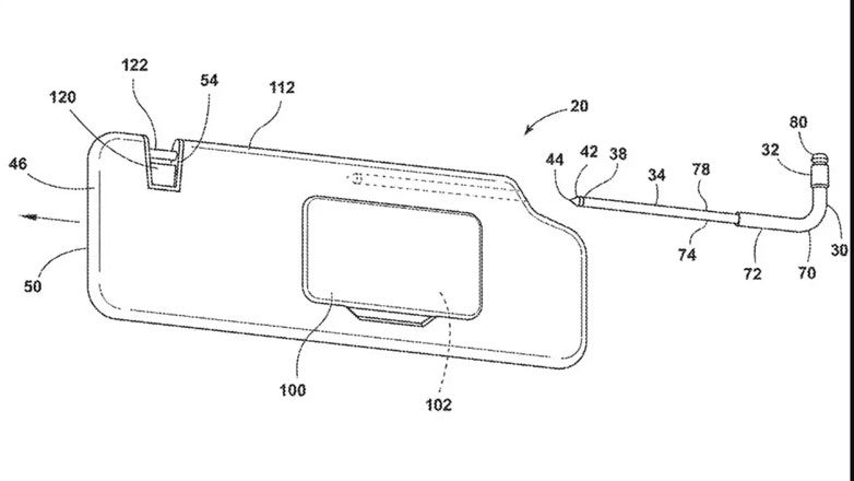 Αρκετές εικόνες στην πατέντα δείχνουν ένα κανονικό σκιάδιο που θα μπορούσατε να βρείτε σε οποιοδήποτε όχημα. Είναι τοποθετημένο (όπως σχεδόν όλα) σε μια μεταλλική ράβδο, η οποία σας επιτρέπει να το γυρίσετε ανάλογα με τη θέση του ήλιου και να έχετε ίσκιο.