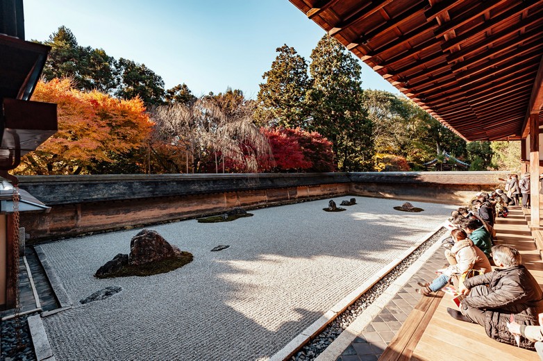 Ο ναός Ryoanji στο Kyoto της Ιαπωνίας, βρίσκεται μόλις 30 λεπτά από τον σιδηροδρομικό σταθμό του Kyoto και αποτελεί ένα μνημείο παγκόσμιας κληρονομιάς, αναγνωρισμένο από την UNESCO. Φημισμένος για το «sekitei» design του, ο ναός του Ζεν αποτελεί το πιο χαρακτηριστικό δείγμα ιαπωνικής τεχνικής ξηρού κήπου. Τα χαλίκια είναι προσεκτικά τοποθετημένα, ώστε να σχηματίζουν μοτίβα που μοιάζουν με τρεχούμενο νερό, ενώ η ψευδαίσθηση ολοκληρώνεται με τους 15 στρατηγικά τοποθετημένους λίθους, που φαίνεται να επιπλέουν στην επιφάνεια. Το παράδοξο του σχεδιασμού είναι πως ανεξάρτητα από τη γωνία από την οποία βλέπει κανείς τον κήπο, δεν μπορεί να δει και τους δεκαπέντε λίθους ταυτόχρονα.