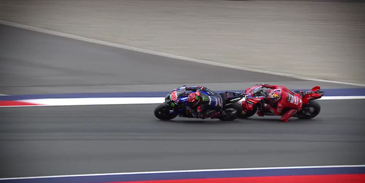 Στον ίδιο αγώνα, ο Quartararo ξεκίνησε από την πέμπτη θέση και αρχικά βρέθηκε έκτος, πίσω από τον παλιό του ομόσταυλο, Maverick Vinales. Ωστόσο ο Γάλλος ανέβασε τον ρυθμό του για να φτάσει ακριβώς πίσω από τον τελικό νικητή του αγώνα, Pecco Bagnaia. Στην πορεία του αυτή, βρήκε μπροστά του τον ομόσταυλο του Ιταλού, τον Jack Miller και αποφάσισε να κάνει την κίνησή του στο νέο σικέιν που κατασκευάστηκε και χρησιμοποιήθηκε φέτος για πρώτη φορά. Ο αναβάτης της Yamaha βούτηξε από την εξωτερική της 2a, για να πάρει την εσωτερική της 2b, ολοκληρώνοντας μια πανέμορφη προσπέραση, η οποία ψηφίστηκε ως η καλύτερη της χρονιάς.