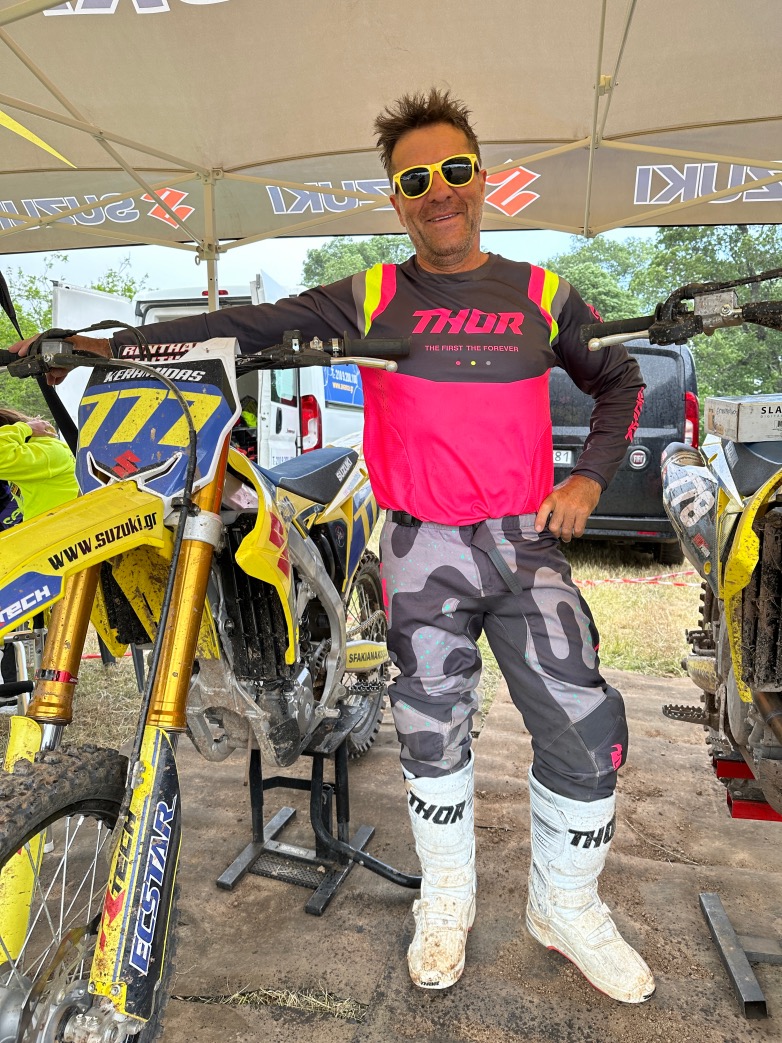 Με πάνω από 150 νίκες, με οδήγηση σε πάνω από 120 πίστες σε 48 χώρες του κόσμου, παράλληλα και με τη δημοσιογραφική του καριέρα, οδηγώντας πολλές μοτοσυκλέτες των Παγκόσμιων Πρωταθλητών, αγωνίζεται φέτος στην κατηγορία Senior του Πανελλήνιου Πρωταθλήματος, με Suzuki RM-Z450 και ήταν ιδιαίτερα χαρούμενος με την χιλιοστή εκκίνησή του στον Αγώνα που έγινε στην πίστα των Τρικάλων το περασμένο Σαββατοκύριακο.