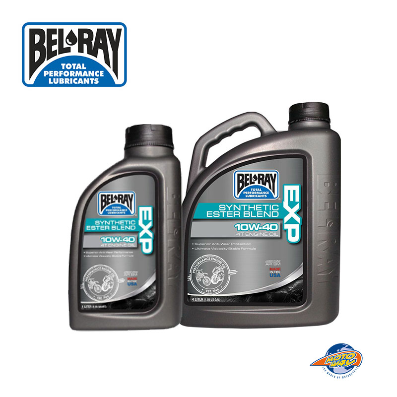 Το Bel-Ray EXP Synthetic Ester Blend 4T Engine Oil είναι ένα λάδι για 4χρονες μοτοσικλέτες που συνδυάζει τα καλύτερης ποιότητας συνθετικά λάδια με επιλεγμένα λάδια ορυκτής βάσης ,εξασφαλίζοντας το υψηλότερο επίπεδο προστασίας. Περιέχει βελτιωτικά VI ανθεκτικά στη διάτμηση για να αντιστέκεται στη διάσπαση του ιξώδους. Πληροί τις υψηλότερες προδιαγραφές, όπως και όλα τα λιπαντικά Bel – Ray, API SN και JASO MA2. Κατάλληλο για αερόψυκτους/υγρόψυκτους 4χρονους κινητήρες και υγρούς συμπλέκτες.