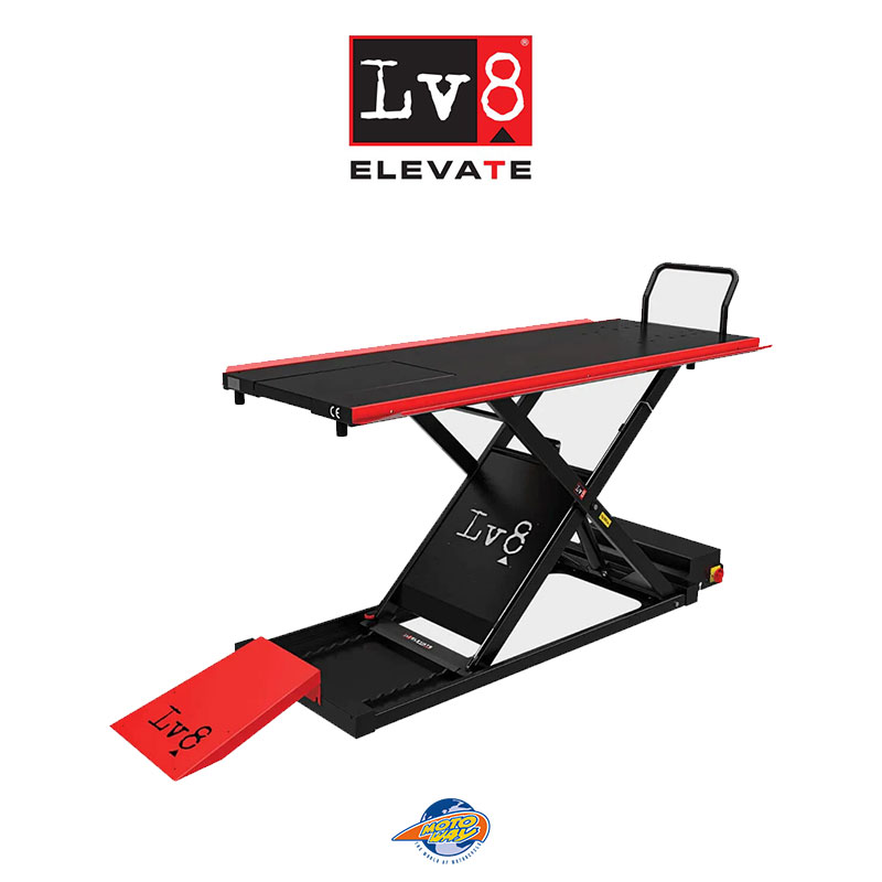Η πλατφόρμα του ανυψωτικού μοτοσικλετών LV8 NANO, διαθέτει αφαιρούμενη ράμπα για τη διευκόλυνση της αποσυναρμολόγησης των πίσω τροχών των μοτοσικλετών και είναι εξοπλισμένη με σετάρισμα κατάλληλο για την τοποθέτηση σφιγκτήρων τροχών, μπροστινών προεκτάσεων, καστανιάς πρόσδεσης και κεντρικών αντιολισθητικών καλυμμάτων.