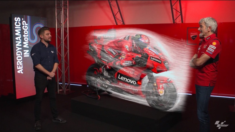 Στο MotoGP η εξέλιξη της αεροδυναμικής γίνεται πλέον με ταχύτατους ρυθμούς καθώς οι μοτοσυκλέτες έχουν πολύ ισχύ και η αεροδυναμική δίνει λύσεις σε πολλούς τομείς, συμβάλλοντας στη βελτίωση των χρόνων γύρου με ταυτόχρονη αυξημένη ασφάλεια για τους αναβάτες. Οι ταχύτερες πλέον μοτοσυκλέτες είναι πιο επικίνδυνες θεωρητικά λόγω περισσότερων χιλιομέτρων, αλλά η αεροδυναμική τους βοηθά να φρενάρουν καλύτερα και να στρίβουν πιο γρήγορα με αποτέλεσμα οι χρόνοι γύρων να είναι καλύτεροι και να οφείλονται όχι μόνο στην υψηλή ταχύτητα στις ευθείες ή την τελική ταχύτητα, αλλά και σε όλες τις υπόλοιπες συνθήκες.