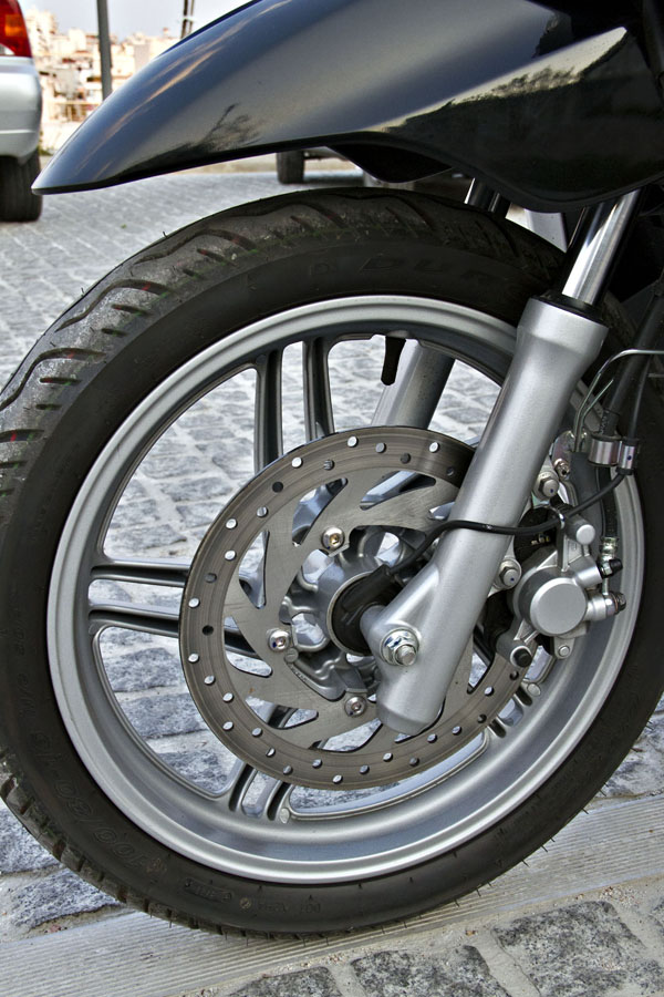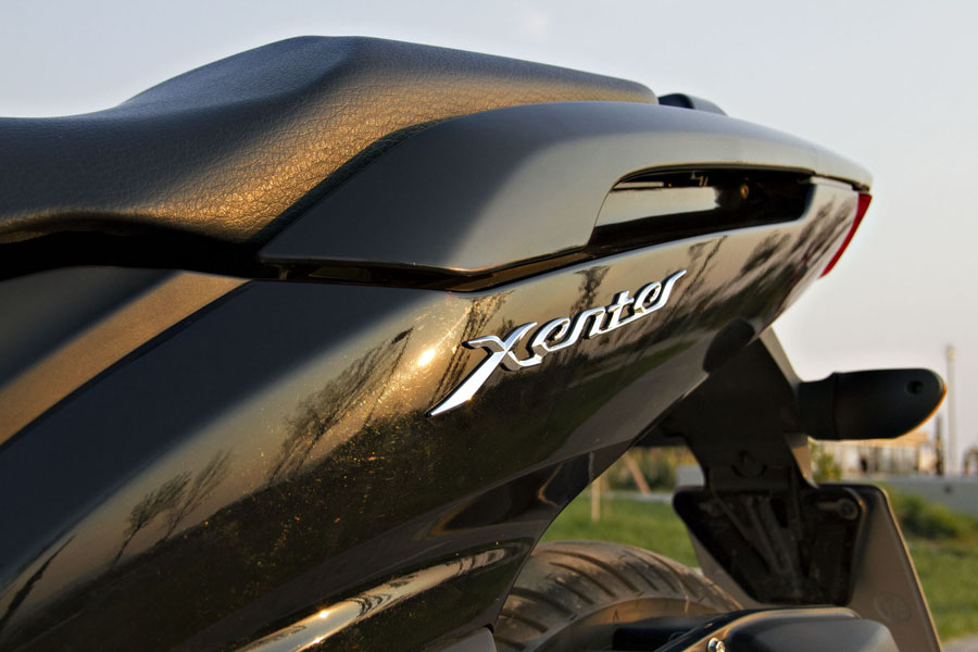 Στα χέρια μας είχαμε το ολοκαίνουργιο Xenter το οποίο από την πρώτη κιόλας επαφή διαπιστώσαμε τον μοντέρνο σχεδιασμό, την υψηλή ποιότητα κατασκευής ενώ σε γενικές γραμμές μας προκάλεσε πολύ θετική εντύπωση, την οποία μάλιστα κατάφερε να διατηρήσει καθ’ όλη τη διάρκεια της δοκιμής. Στις μετακινήσεις μας μέσα στην πόλη το Xenter, εφοδιασμένο με μεγάλους τροχούς και ανάρτηση monocross κατάφερε να κινείται με απίστευτη ευελιξία, ενώ παράλληλα παρέμενε άνετο ακόμη και σε συνεχείς και έντονες ανωμαλίες του οδοστρώματος που είναι και.. άφθονες στους ελληνικούς δρόμους και κυρίως εντός Αθήνας. Ο κινητήρας ήταν πρόθυμος σε κάθε κίνηση του δεξιού μας καρπού και «φρόντιζε» ώστε το Xenter να τρυπώνει γρήγορα και χωρίς δισταγμό σε κάθε ελεύθερο κομμάτι του δρόμου ακόμη και με δεύτερο άτομο στην άνετη σέλα του. Η πρώτη μας επαφή με τα φρένα έγινε όταν κάποιος αφηρημένος οδηγός παραβίασε τον ερυθρό σηματοδότη! Ο μπροστινός δίσκος 267χιλ. μαζί με το ενοποιημένο σύστημα πέδησης κατάφεραν με ευκολία να σώσουν τη κατάσταση. Είναι αξιοσημείωτο μάλιστα πόσο αρμονικά δουλεύει το ενοποιημένο σύστημα πέδησης παρέχοντας μεγάλη βοήθεια και ασφάλεια ιδιαίτερα σε μη έμπειρους αναβάτες.