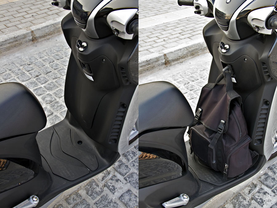 Τα χειριστήρια βρίσκονται σε οικεία θέση, ενώ η μεγάλη οθόνη τύπου LCD μας παρείχε ευδιάκριτα όλες τις απαραίτητες πληροφορίες. Μας άρεσε ιδιαίτερα η παρουσία ένδειξης της εξωτερικής θερμοκρασίας, καθώς και της ώρας. Με το σκοτάδι να πέφτει, τα μεγάλα εμπρός φωτιστικά σώματα έκαναν άψογα τη δουλειά τους, με μοναδική ίσως παραφωνία το ενδεικτικό λαμπάκι της μεγάλης σκάλας, το οποίο σε παρατεταμένη χρήση μπορεί να γίνει ενοχλητικό. Ένα όχημα πόλης, όμως, είναι σημαντικό να παρέχει τη δυνατότητα μεταφοράς ακόμα και μικρών αντικειμένων. Παρά το μικρό αποθηκευτικό χώρο κάτω από τη σέλα, λόγω των μεγάλων τροχών, το επίπεδο μαρσπιέ, μαζί με τη βαλίτσα 39 λίτρων και ένα μικρό ντουλαπάκι κάτω από τα όργανα κατόρθωσε να καλύψει τις καθημερινές μας ανάγκες.