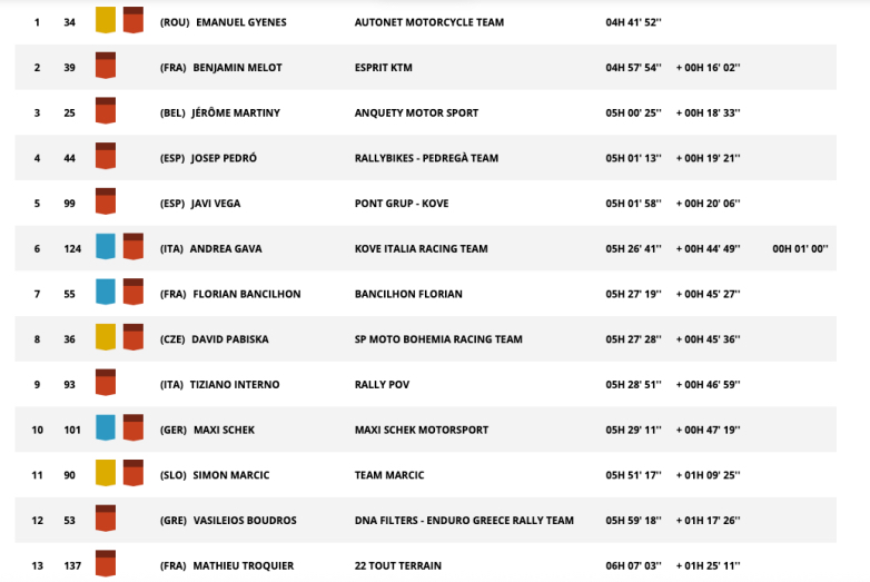 Στην κατηγορία Original by Motul, στην οποία διαγωνίζεται ο Έλληνας οδηγός κέρδισε ο Ρουμάνος Emanuel Gyenes, με ΚΤΜ