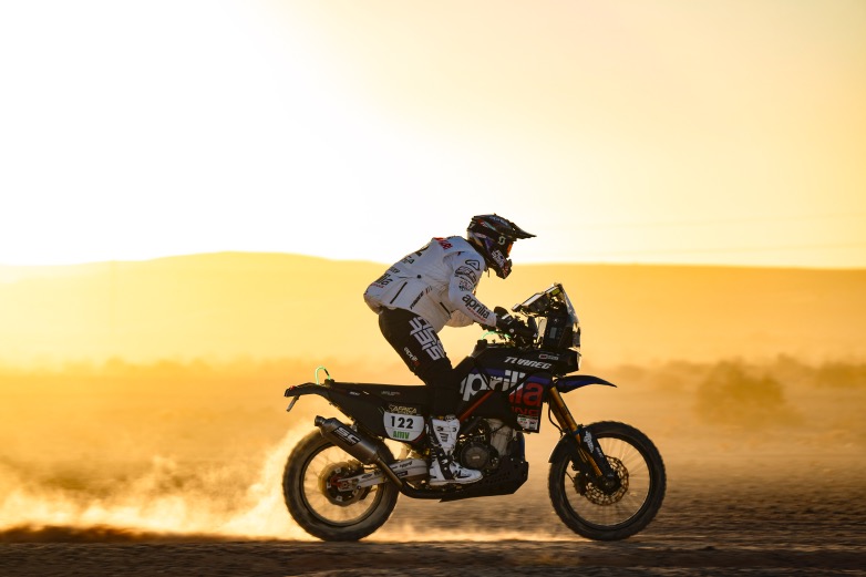 Η Aprilia Tuareg επιβεβαιώνει τις μεγάλες δυνατότητές της σε ένα μακρύ και δύσκολο σκέλος με 383 χλμ. ειδικών διαδρομών. Συνεχής βελτίωση για τον Francesco Montanari που έφτασε την 8η θέση.