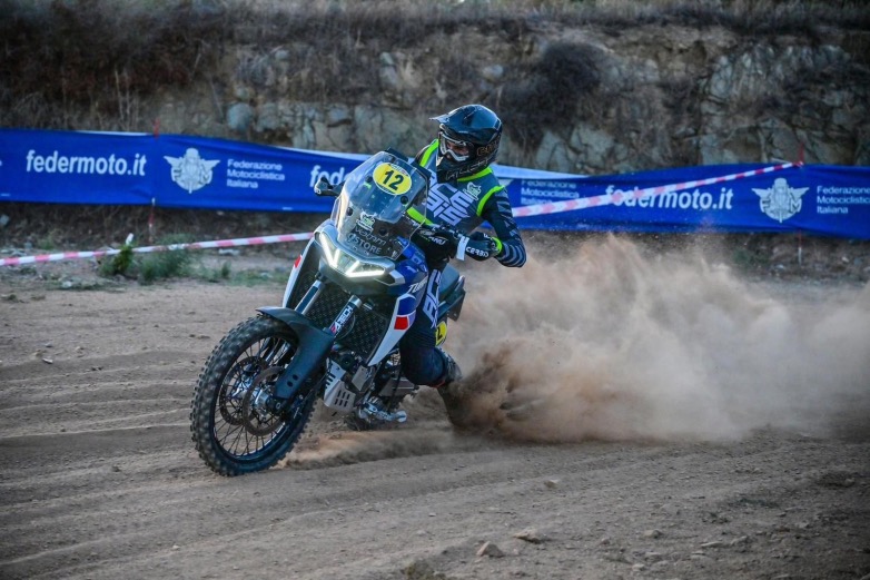 Μια εξαιρετική παράσταση ξεκινά για την Aprilia Tuareg στο Ιταλικό Motorally, με τους αναβάτες Jacopo Cerutti, Francesco Montanari και Claudio Spanu.