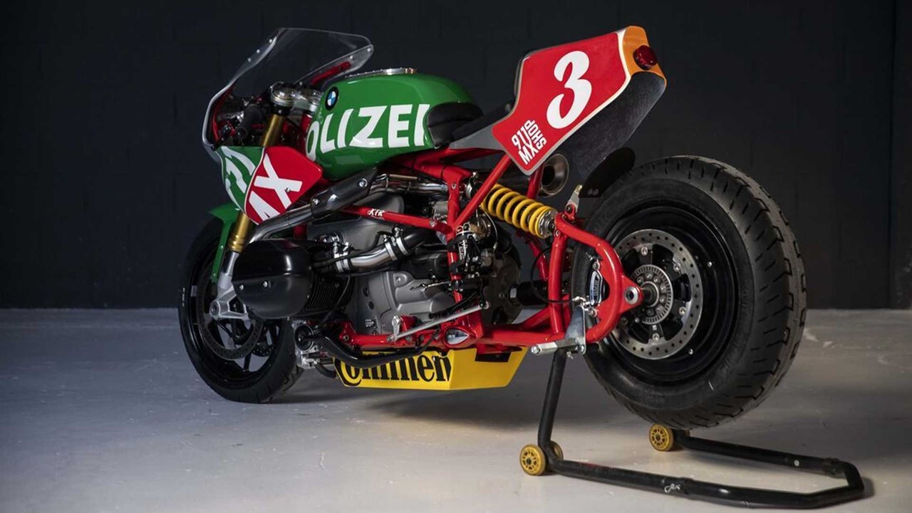 Το βάψιμο με το χαρακτηριστικό “Polizei” ενισχύει την αισθητική του café racer. Και, φυσικά, μια χειροποίητη, custom εξάτμιση με τελείωμα Spark XTR ανεβάζει ακόμη περισσότερο αισθητικά την κατασκευή, αλλά και τα ντεσιμπέλ.