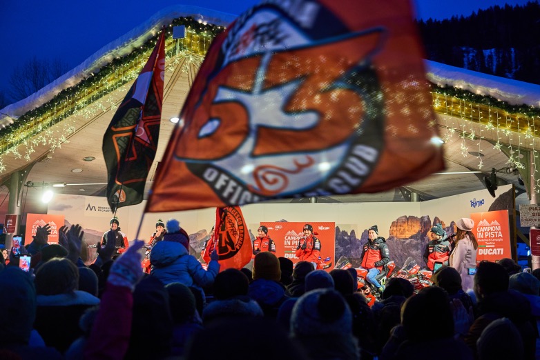 Την Τρίτη 23 Ιανουαρίου, ενώ ο Bautista και ο Bulega πήγαιναν στη Χερέθ ντε λα Φροντέρα για να λάβουν μέρος στο πρώτο τεστ WorldSBK της σεζόν, οι Bagnaia, Bastianini και μέρος της διοίκησης της Ducati και της Ducati Corse απόλαυσαν ένα σκι με την ανατολή του ηλίου και στη συνέχεια προκαλούσαν ο ένας τον άλλον σε έναν συναρπαστικό αγώνα κατάβασης στα χιόνια της εμβληματικής πλαγιάς 3Tre, μέρος του Skiarea Campiglio Dolomiti di Brenta Val di Sole Val Rendena.