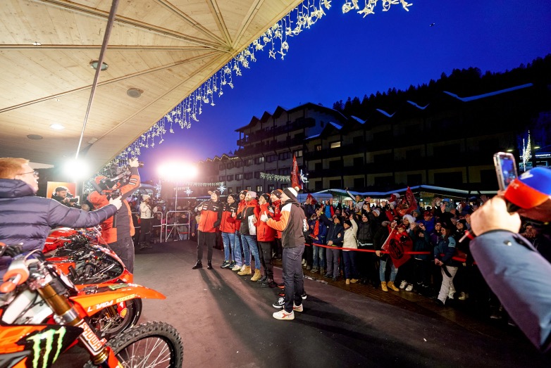 Μετά την παρουσίαση, οι αναβάτες της Ducati συνάντησαν το κοινό στο κέντρο της Madonna di Campiglio αργά το απόγευμα της Δευτέρας: στη σκηνή που είχε στηθεί στην Piazza Sissi, χορωδίες επευφημιών και χειροκροτημάτων συνόδευσαν τους τρεις Παγκόσμιους Πρωταθλητές Francesco Bagnaia (MotoGP), Alvaro Bautista (WorldSBK) και τον Nicolò Bulega (WorldSSP), ο οποίος αυτή τη σεζόν θα αλλάξει από την Panigale V2 στην Panigale V4 R, τον Enea Bastianini και τα πρόσωπα του αγωνιστικού έργου της Ducati στο Motocross, τον εννέα φορές Παγκόσμιο Πρωταθλητή MX Antonio Cairoli και τον οκτώ φορές Ιταλό Πρωταθλητή Alessandro Lupino. Δίπλα στους αναβάτες στην Piazza Sissi, για πρώτη φορά μαζί δημόσια, υπήρχαν όλες οι μοτοσυκλέτες που θα αγωνιστούν το 2024: η Desmosedici GP της Ducati Lenovo Team, η Panigale V4 R του Aruba.it – Racing Ducati Team και η Ducati Desmo450 MX που θα κάνει το ντεμπούτο της στο Ιταλικό Πρωτάθλημα Motocross ως μέρος της διαδικασίας ανάπτυξης της μοτοσυκλέτας.