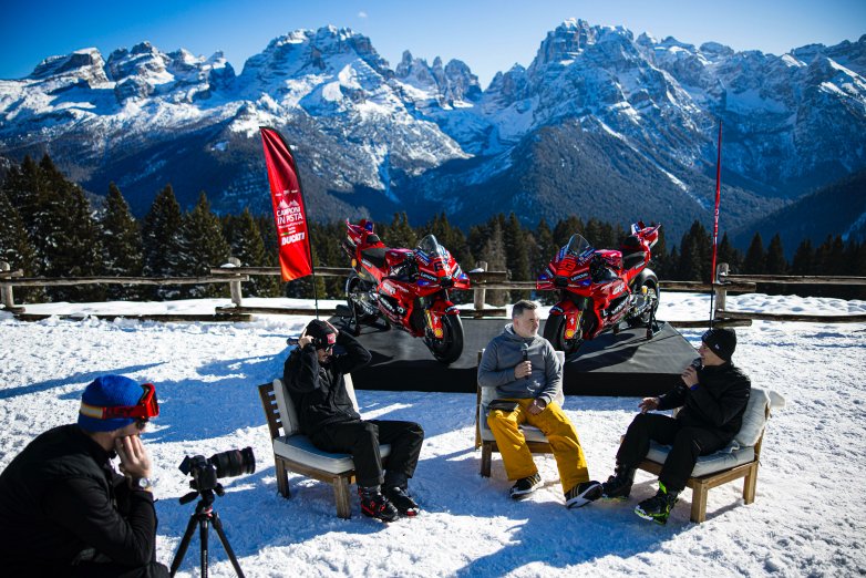 Στην εκδήλωση “Campioni Ιn Pista” έγινε η πρώτη τους αγωνιστική κόντρα του 2025, έστω στον καθιερωμένο Αγώνα Σκι ανάμεσα στους ανθρώπους της Ducati, των χορηγών και των δημοσιογράφων.
