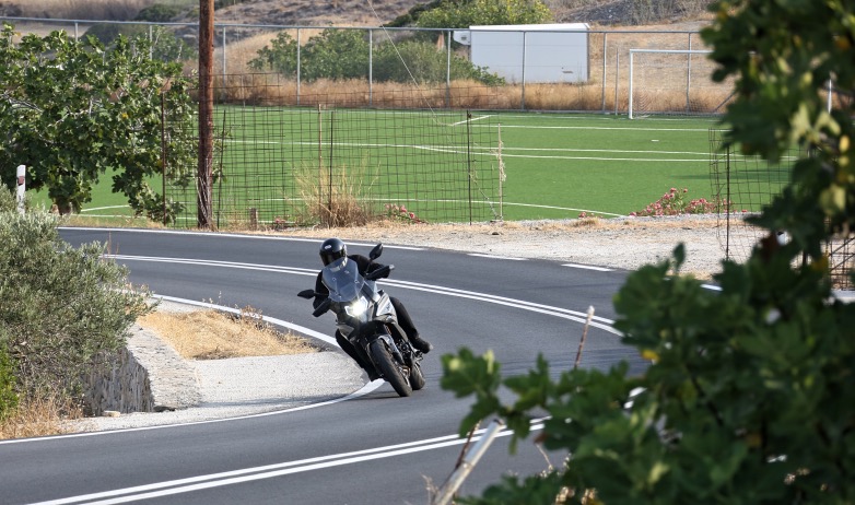 Στα κομμάτια με στροφές η συμπεριφορά πλαισίου – αναρτήσεων είναι καλή και μόνο τα ελαστικά βάζουν το όριο, χωρίς να σου δίνουν την αίσθηση που χρειάζεται για να πιέσεις λίγο περισσότερο. Δεν είναι θέμα της μάρκας, αλλά του τύπου που είναι σχεδιασμένος για περισσότερα χιλιόμετρα, παρά για πρόσφυση και έτσι αν κάποιος θέλει καλύτερο παιχνίδι στις στροφές, είναι το μόνο πράγμα που χρειάζεται αλλαγή, σε λίγο πιο μαλακές γόμες.