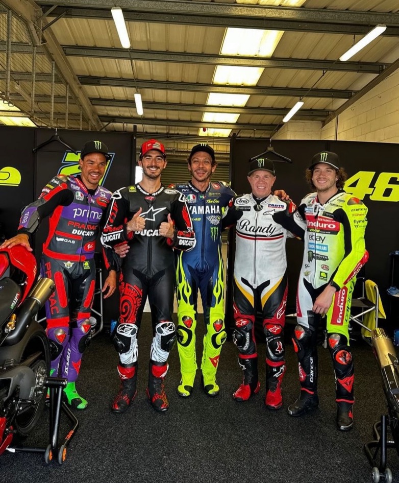 Μια selfie που τραβήχτηκε από τον Rossi περιλάμβανε τους εκπληκτικούς αναβάτες και πλάνα που δημοσιεύτηκαν στα μέσα κοινωνικής δικτύωσης είδαν τον #46 Rossi να οδηγεί μπροστά από τους αναβάτες στην πίστα του Silverstone.