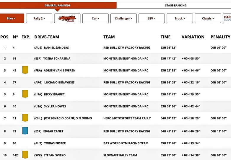 Προσωρινή Κατάταξη – Rally Dakar 2025 (μετά από 12 από τις 12 ΕΔ)